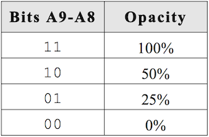 The most significant two bits of each 32-bit pixel contain its alpha information:
