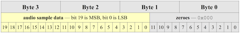 Note that when playing video from a host audio buffer that contains 32-bit audio samples, only the most-significant 24 bits will end up in the transmitted audio packets. The least-significant 8 bits from each 32-bit sample word in the host buffer are ignored.