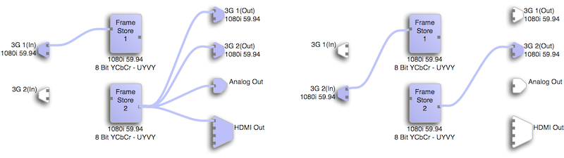 AutoCirculate_39 message group is enabled). For example:AutoCirculate channel 3: 85 frames (10 thru 94) exceeds 40-frame max audio buffer capacityThere are times when it’s necessary to operate additional FrameStore(s)/Channel(s) from a primary or master FrameStore/Channel. For example, to stream YUV Video and Key to two separate SDI outputs, with each YUV signal coming from its own video stream on the host computer, the Key channel/stream must be circulated coincident with the Video (fill) channel’s VBI.