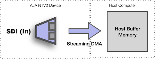 The AJA device driver performs the bulk of the work involved in streaming audio and video to/from the AJA hardware. It helps to synchronize the audio with the video, detect dropped frames while streaming, time-stamps the frame data, reads or writes embedded timecode, and manages many other details.